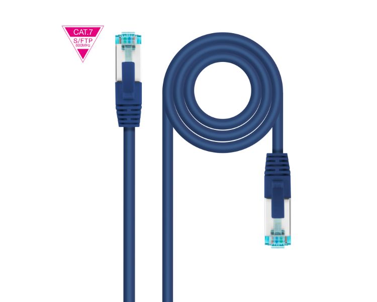 CABLE DE RED LATIGUILLO 600MHZ LSZH SFTP PIMF CAT7 AWG26 0.25 M AZUL NANOCABLE