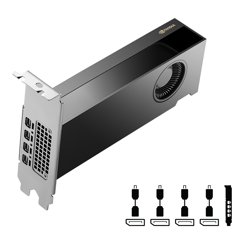 GPU: NVIDIA RTX 2000 Imagen Salida: 4xMini-DP Largo: 168 Medidas: 167,6 × 75,5 × 7,99 mm Memoria Ram: 16GB Tipo Memoria: GDDR6 ECC